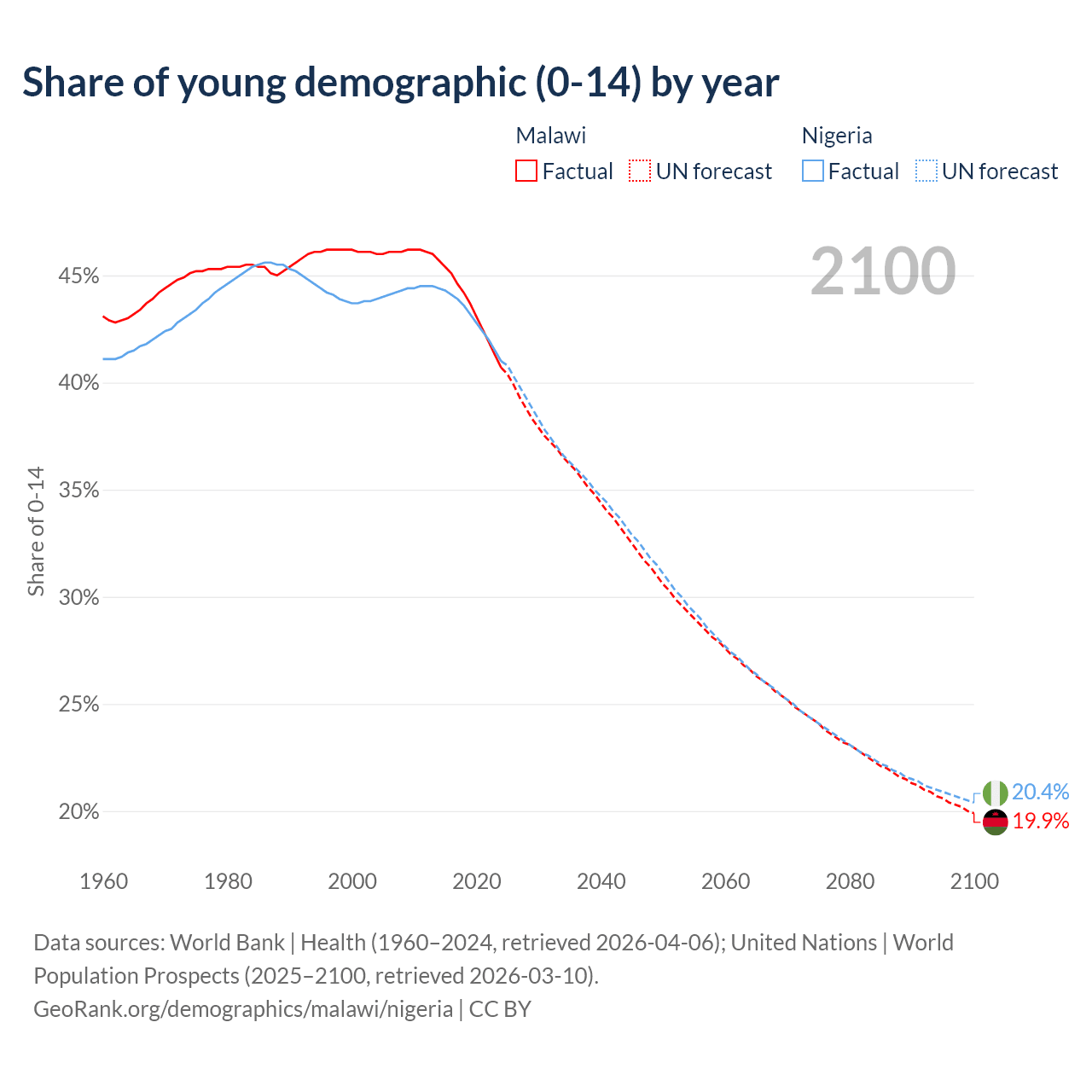 - The share of young demographic (0-15 years old) in Malawi is 40.7% vs 41% in Nigeria.