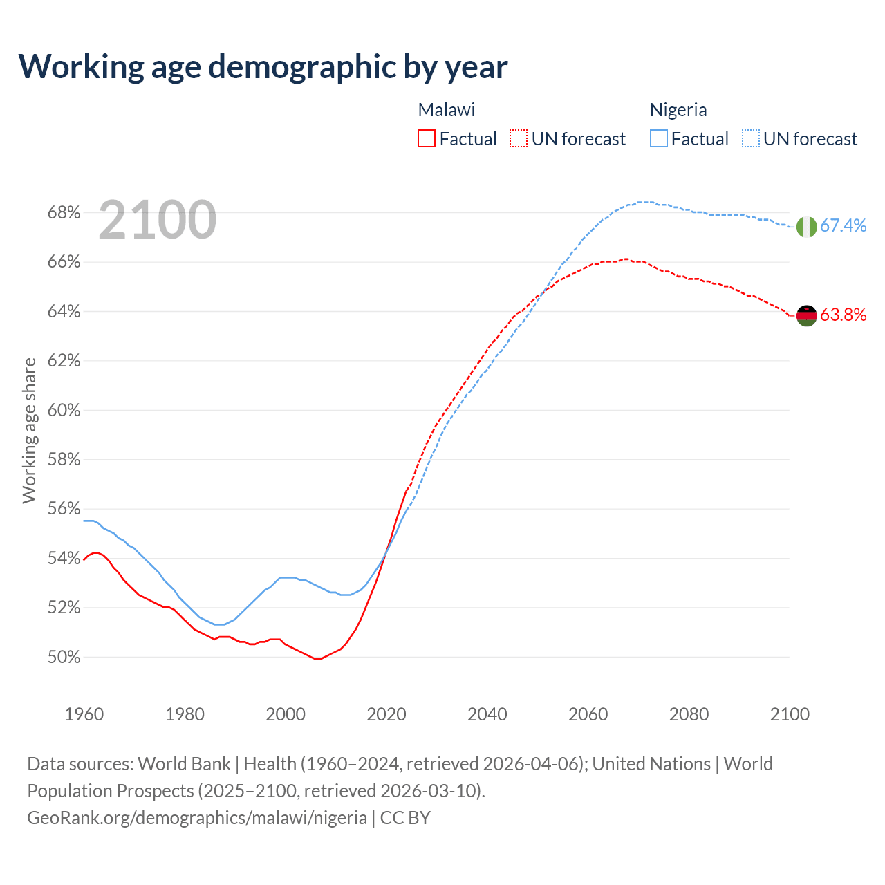 - Malawi has 13M working age adults (aged 15-64) vs 136M in Nigeria.