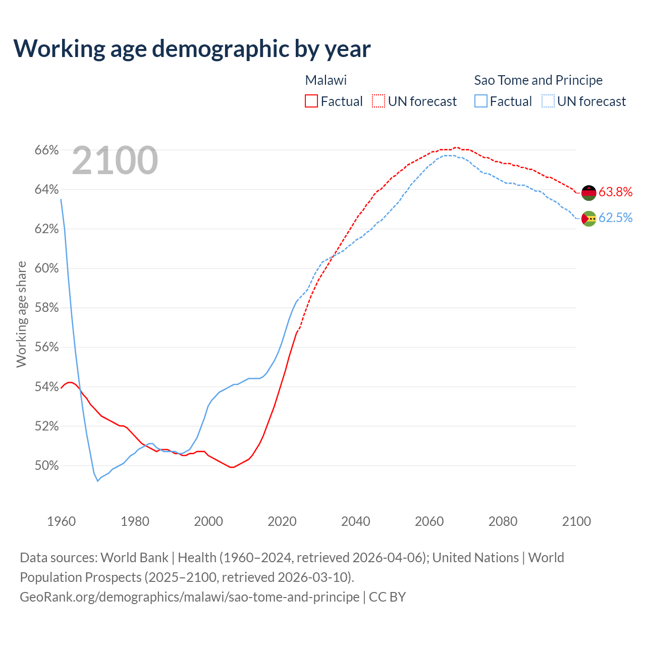 - Malawi has 13M working age adults (aged 15-64) vs 144K in Sao Tome and Principe.