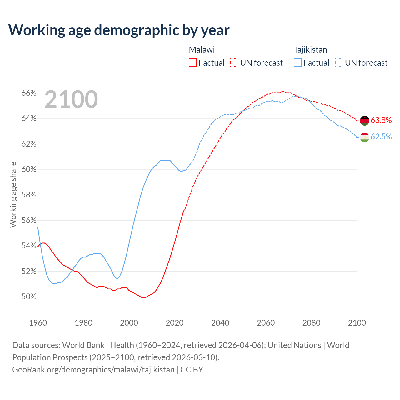 - Malawi has 13M working age adults (aged 15-64) vs 6.61M in Tajikistan.