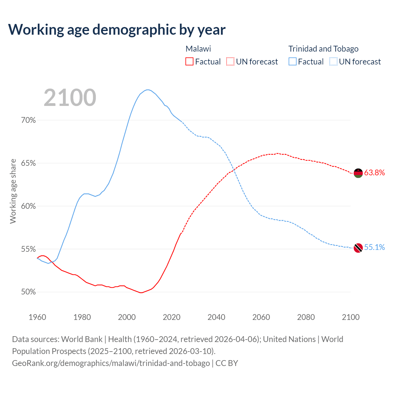 - Malawi has 13M working age adults (aged 15-64) vs 960K in Trinidad and Tobago.