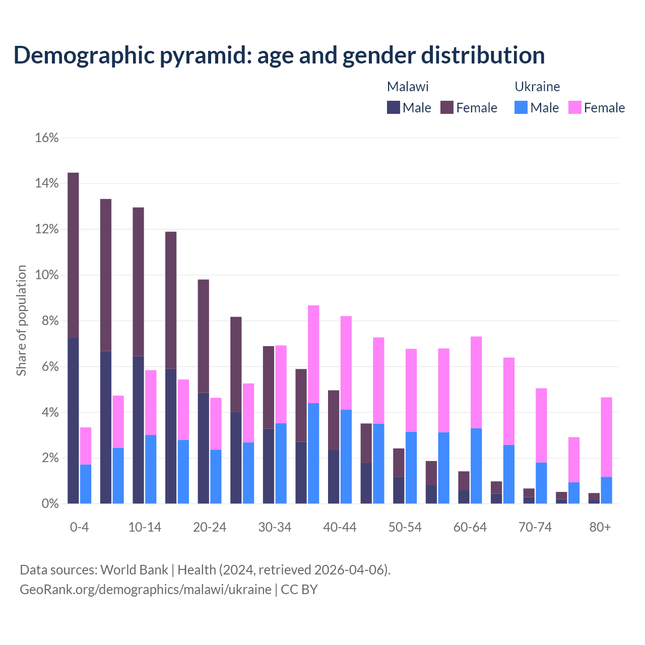 Demographics of Malawi compared to Ukraine: