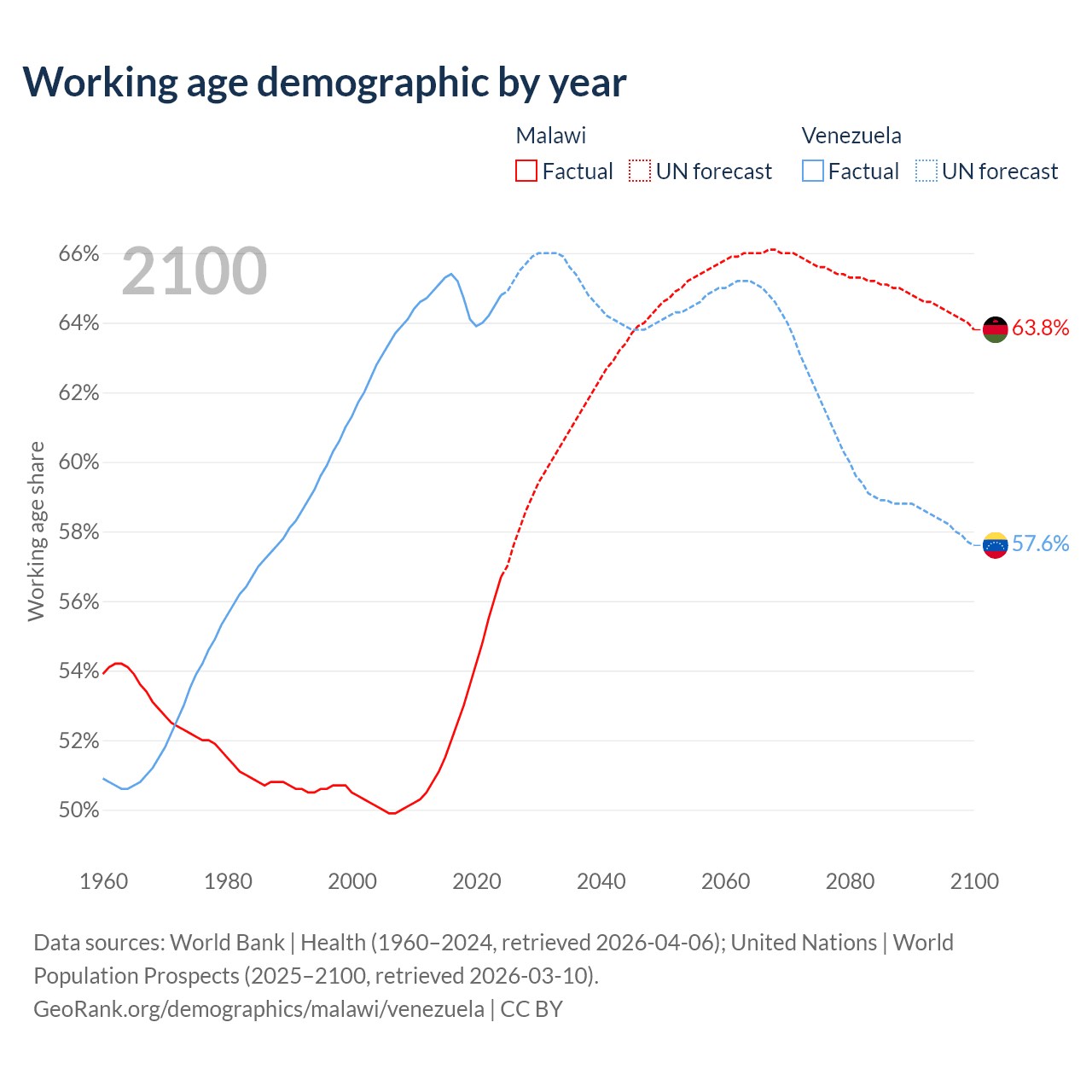 - Malawi has 13M working age adults (aged 15-64) vs 18.6M in Venezuela.