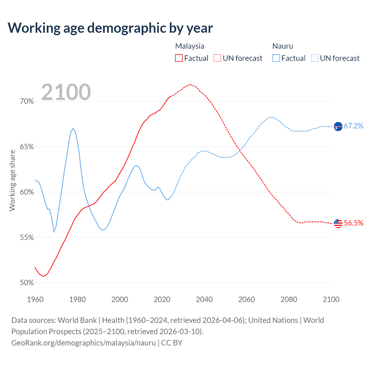 - Malaysia has 25.7M working age adults (aged 15-64) vs 7.2K in Nauru.