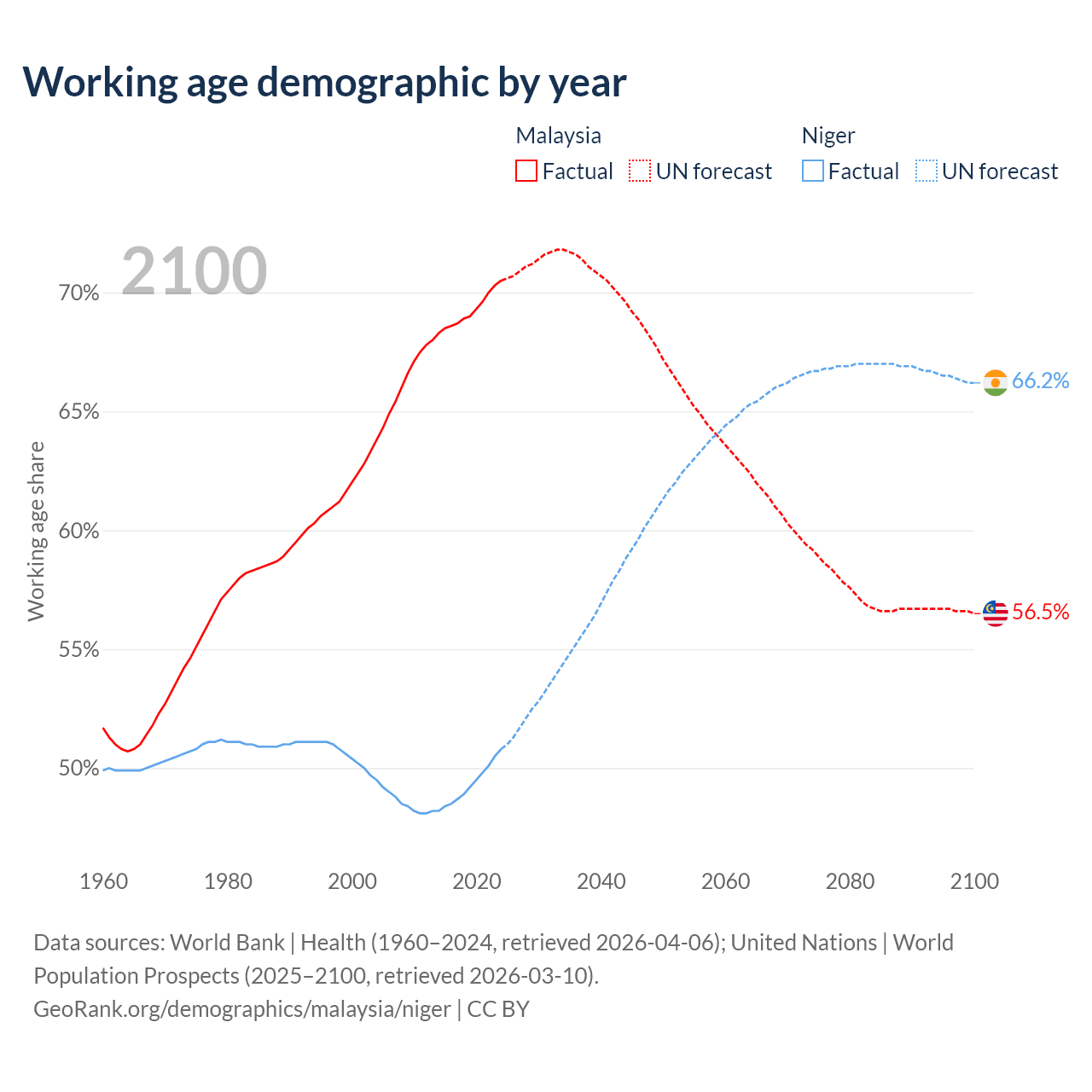 - Malaysia has 25.7M working age adults (aged 15-64) vs 14.8M in Niger.