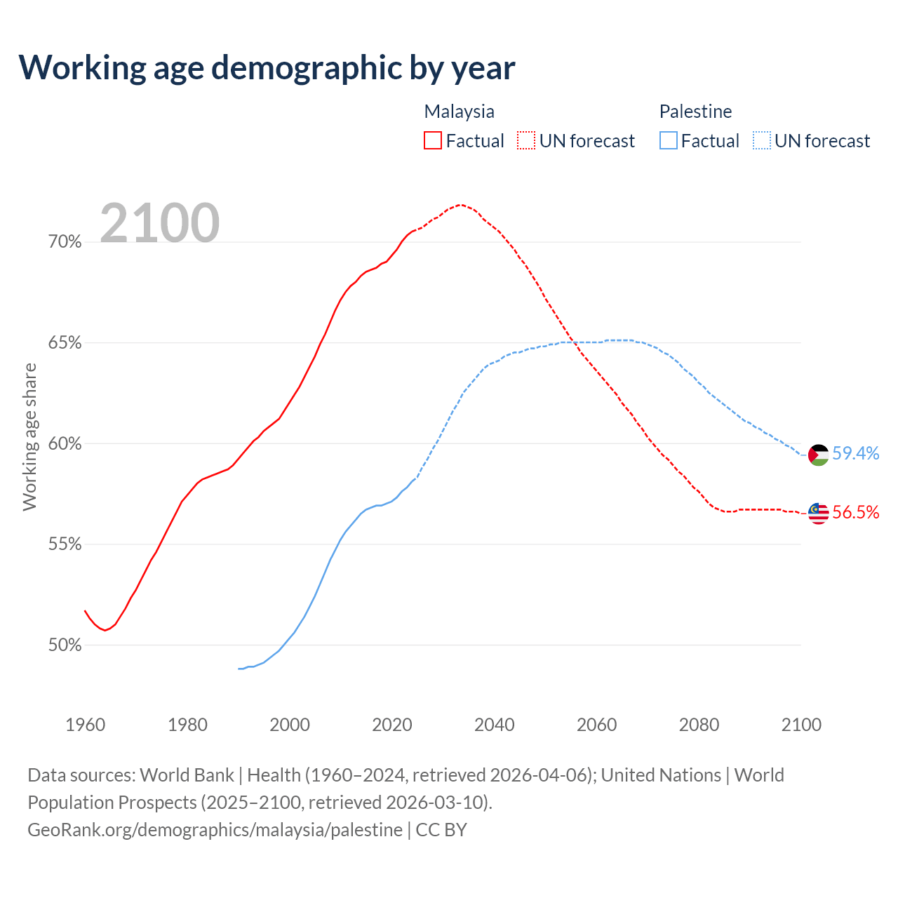 - Malaysia has 25.7M working age adults (aged 15-64) vs 3.2M in Palestine.