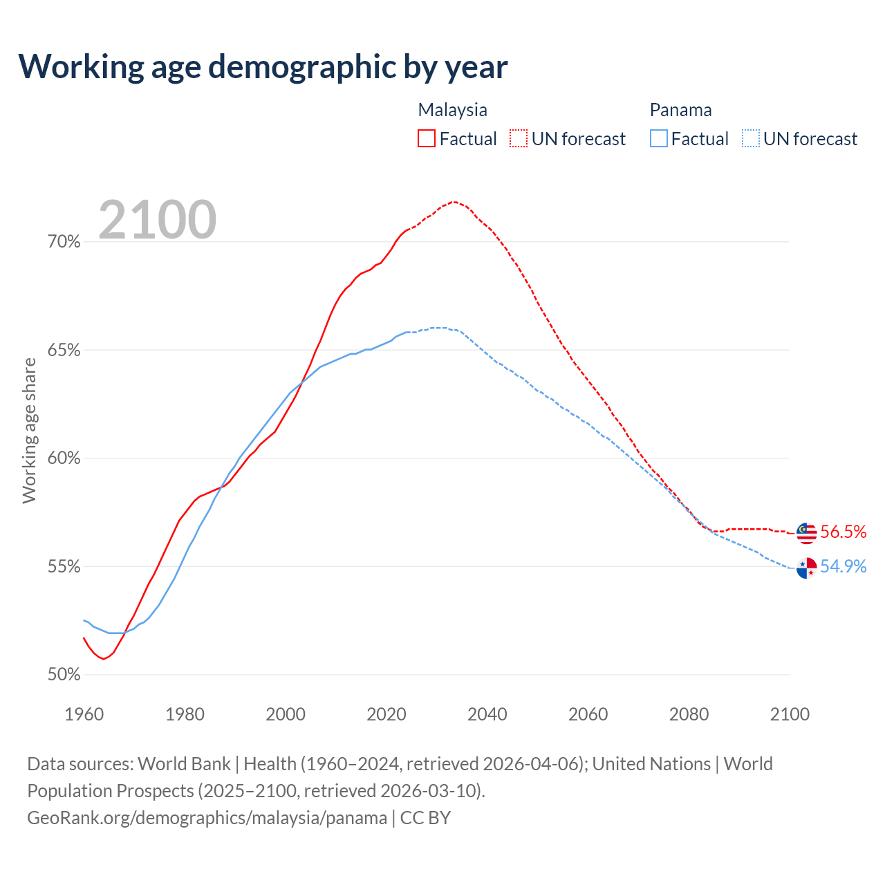 - Malaysia has 25.7M working age adults (aged 15-64) vs 3.05M in Panama.