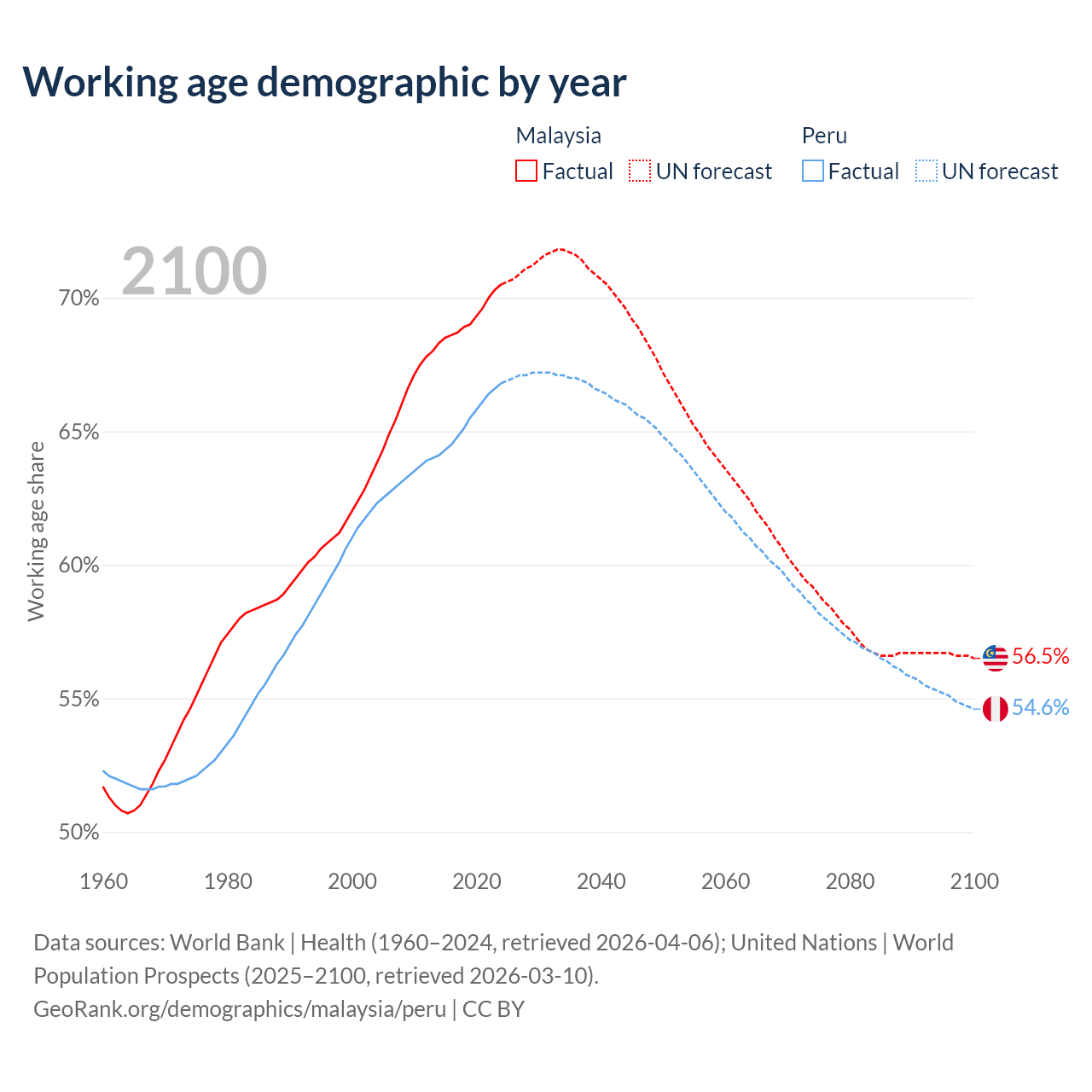 - Malaysia has 25.7M working age adults (aged 15-64) vs 23.4M in Peru.