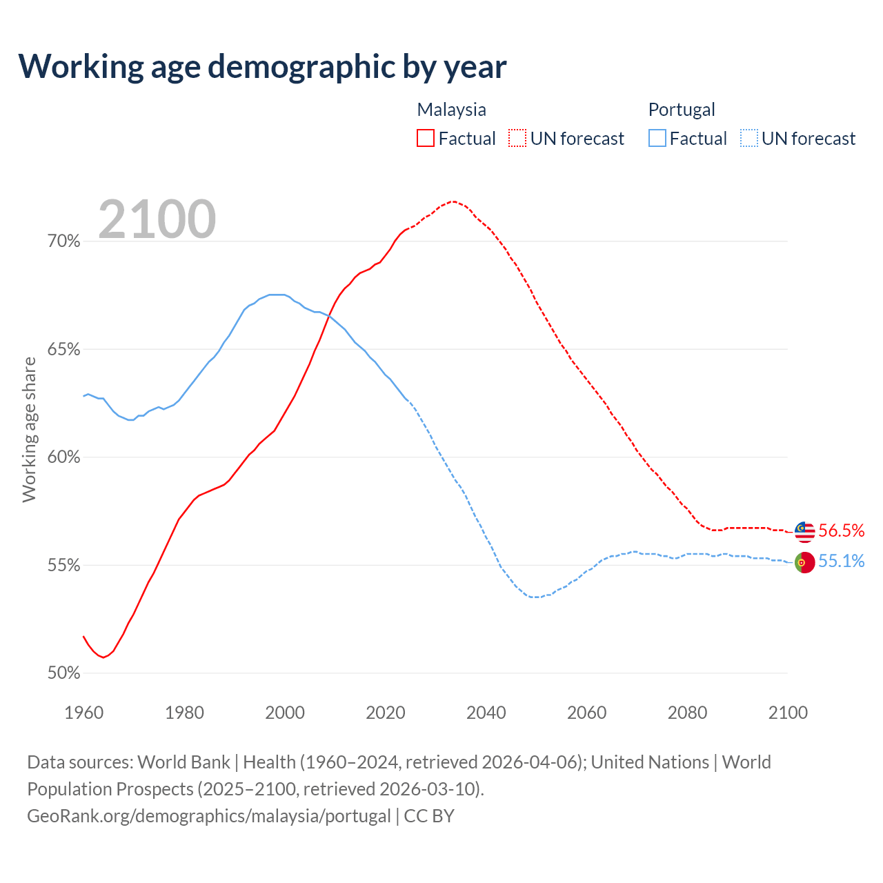 - Malaysia has 25.7M working age adults (aged 15-64) vs 6.68M in Portugal.
