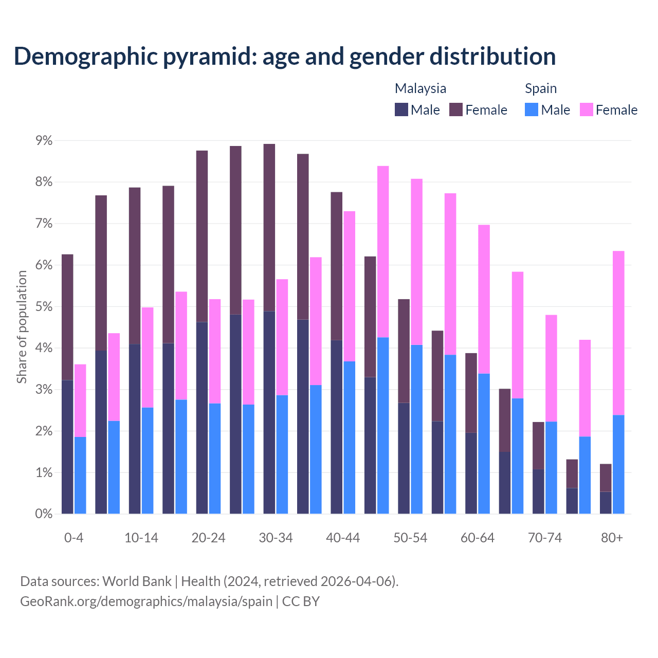 Demographics of Malaysia compared to Spain: