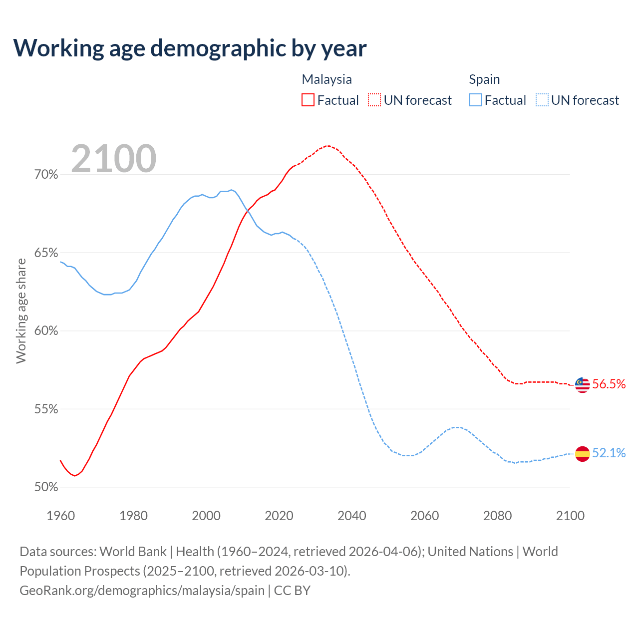 - Malaysia has 25.7M working age adults (aged 15-64) vs 32.2M in Spain.