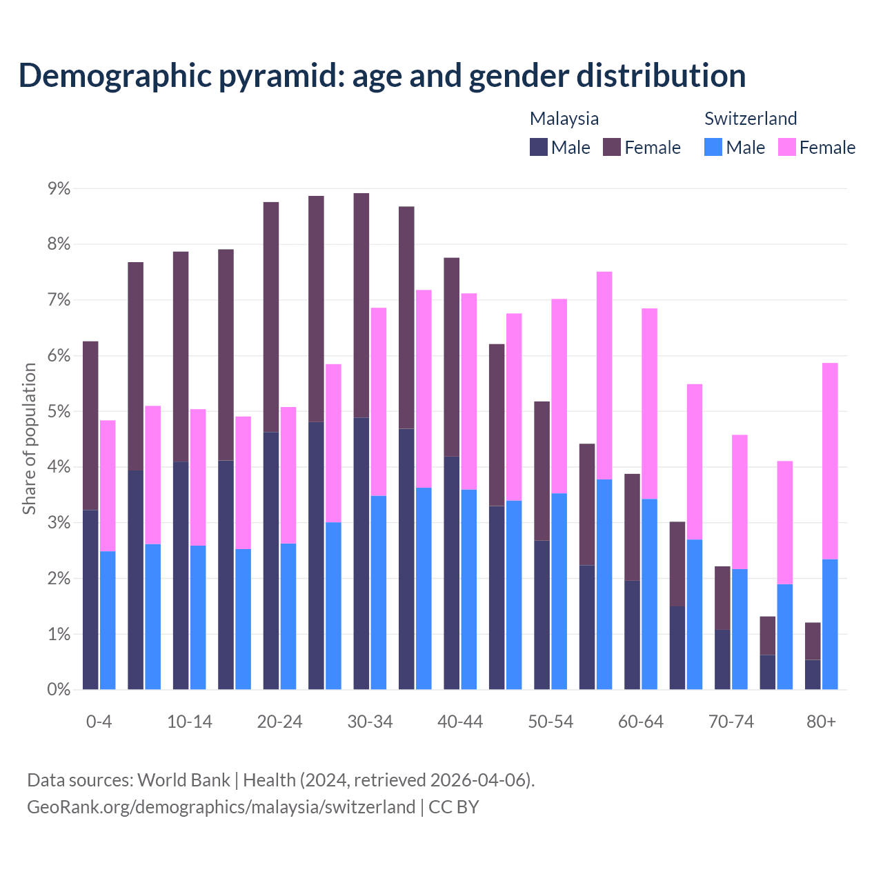 Demographics of Malaysia compared to Switzerland: