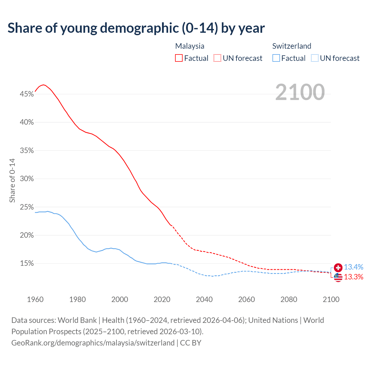 - The share of young demographic (0-15 years old) in Malaysia is 21.8% vs 15% in Switzerland.