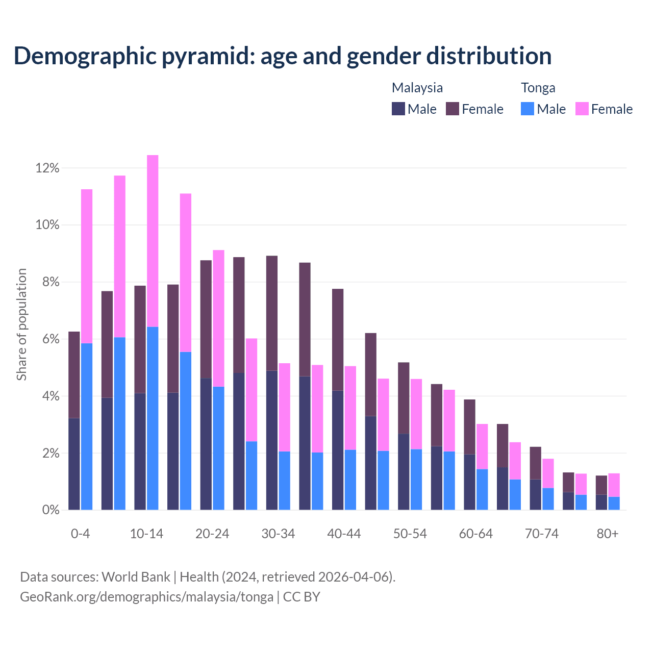 Demographics of Malaysia compared to Tonga: