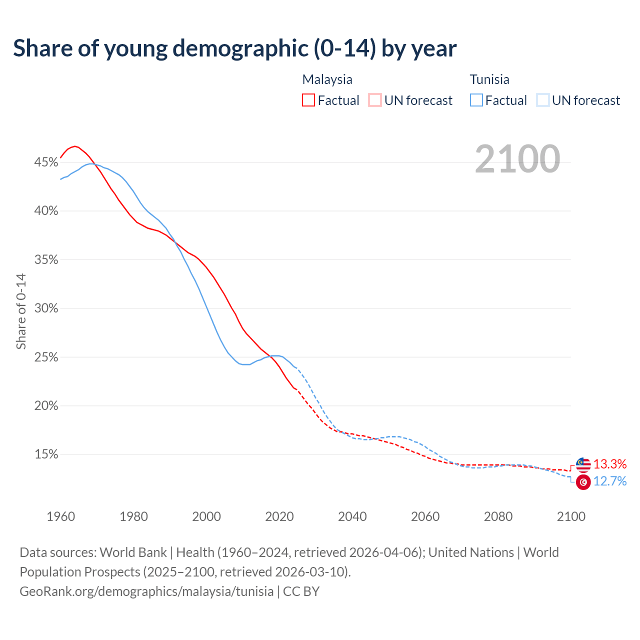 The share of older people aged 65 and over is 7.74% in Malaysia and 9.53% in Tunisia. Life expectancy in Malaysia compared to Tunisia .