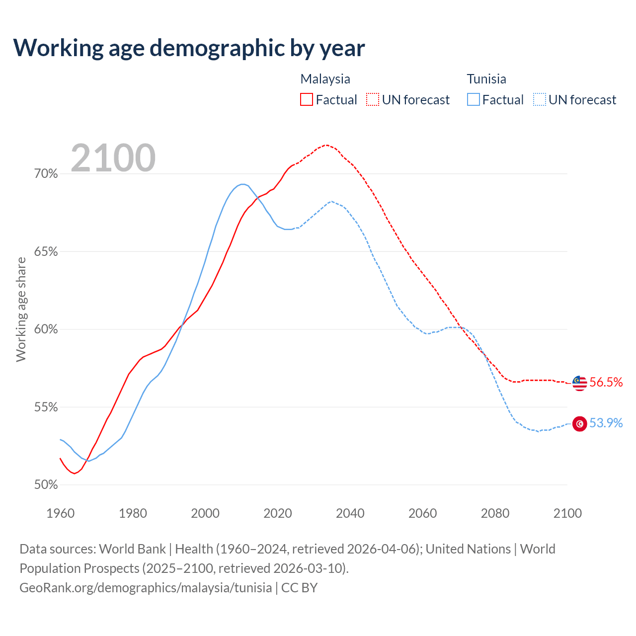 - Malaysia has 25.7M working age adults (aged 15-64) vs 8.26M in Tunisia.