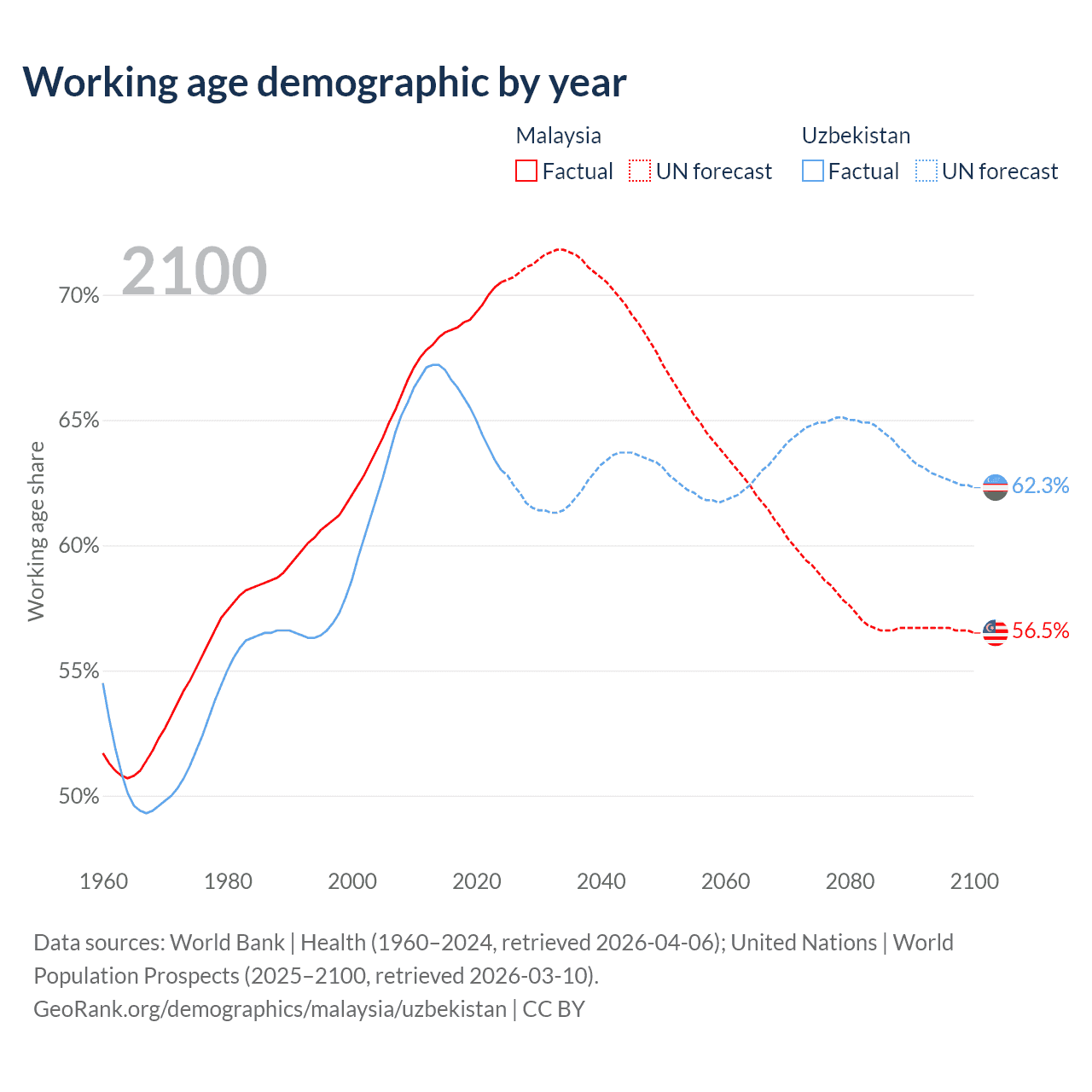 - Malaysia has 25.7M working age adults (aged 15-64) vs 23.9M in Uzbekistan.