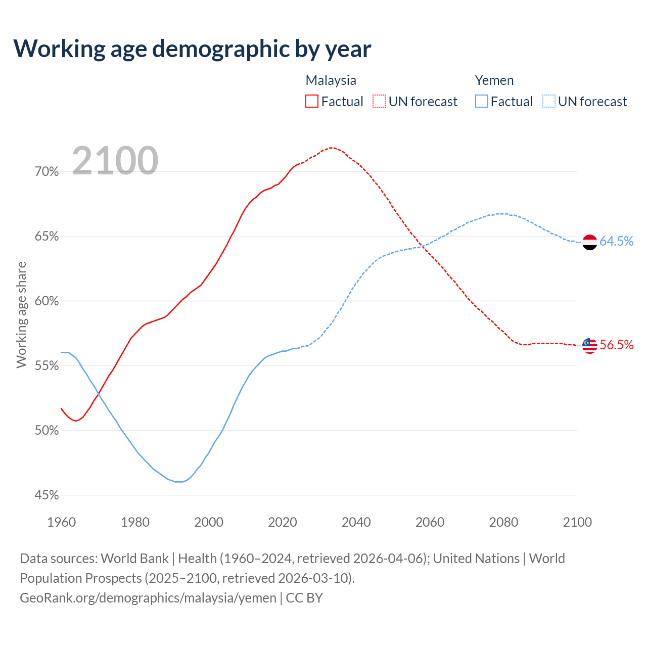 - Malaysia has 25.7M working age adults (aged 15-64) vs 24.4M in Yemen.