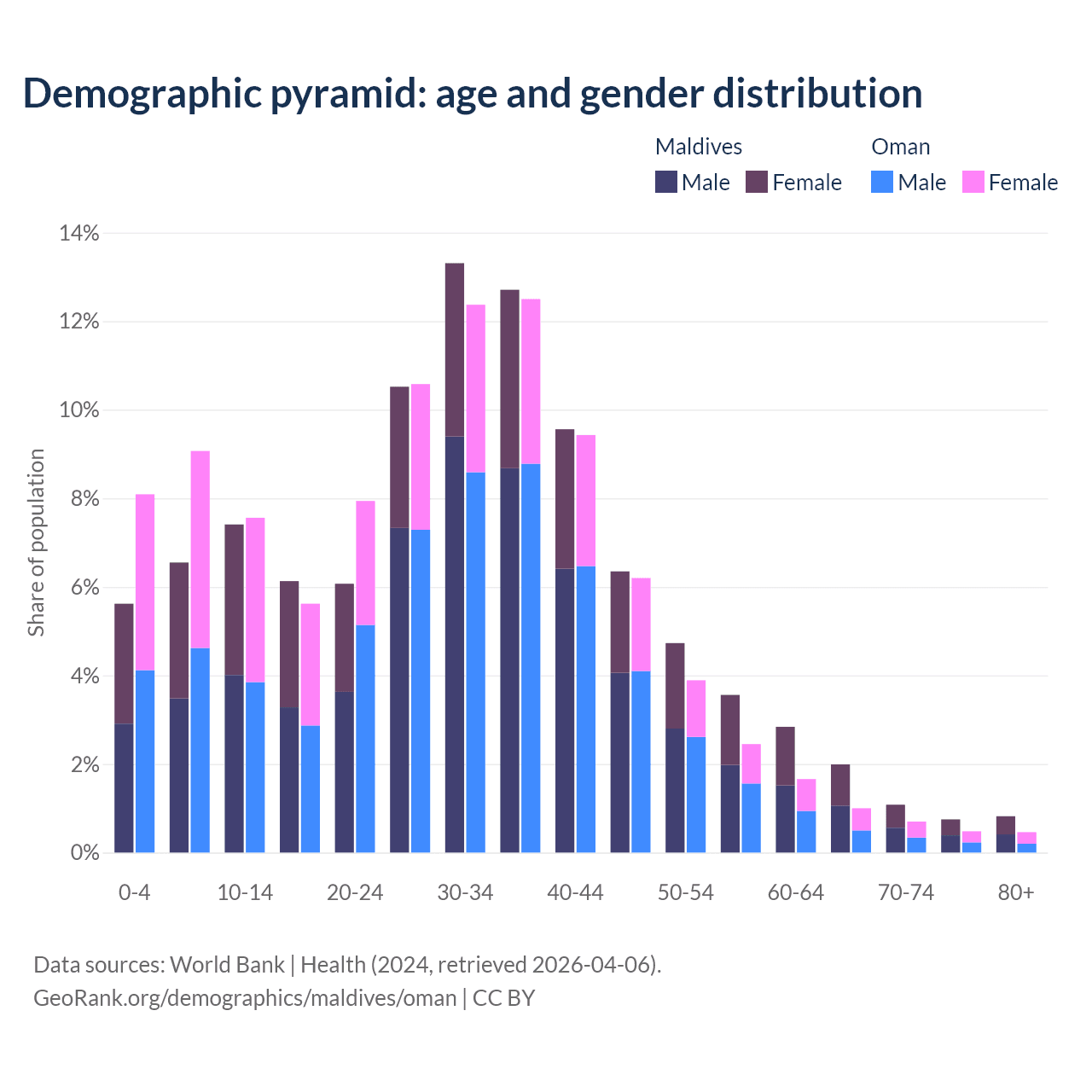 Demographics of Maldives compared to Oman: