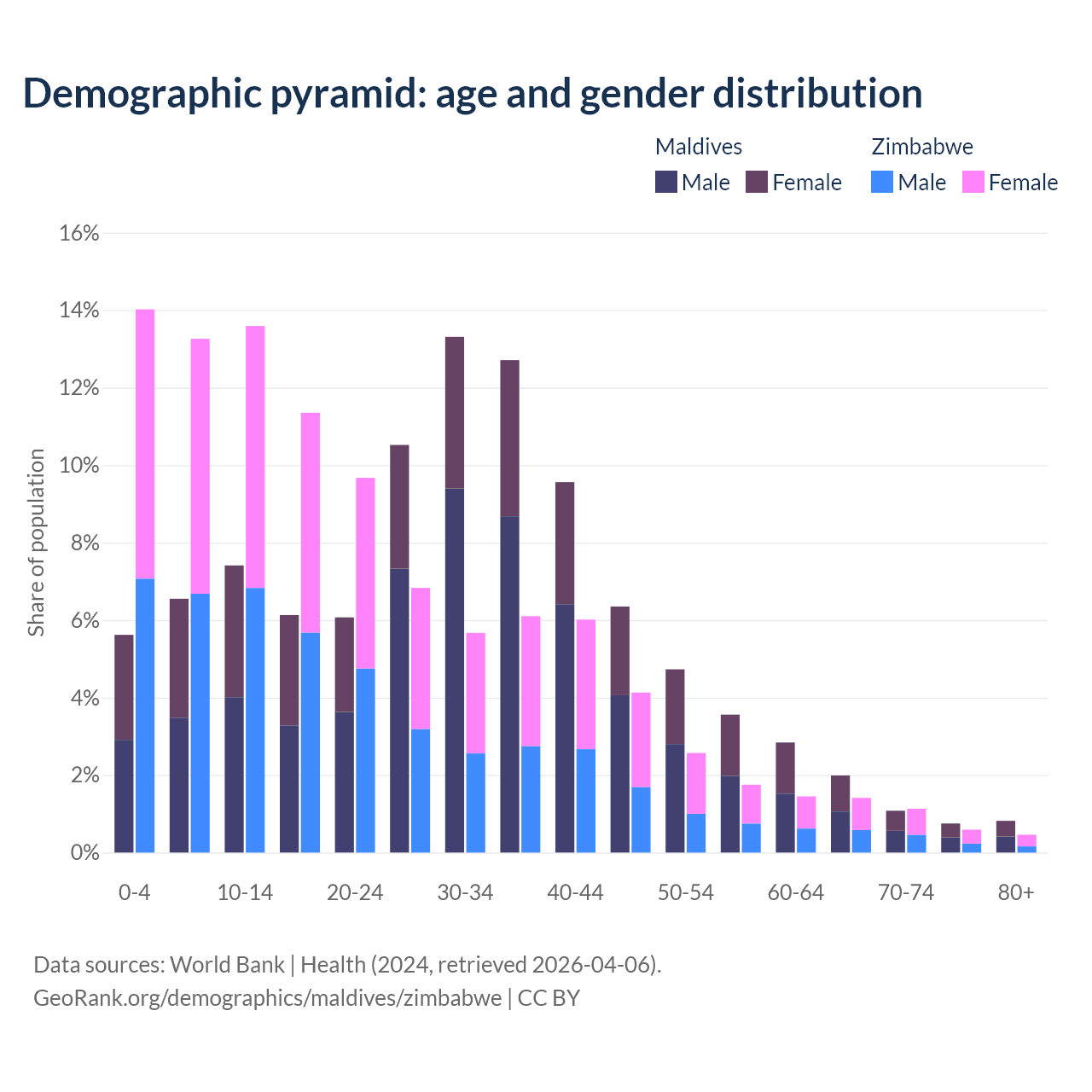 Demographics of Maldives compared to Zimbabwe: