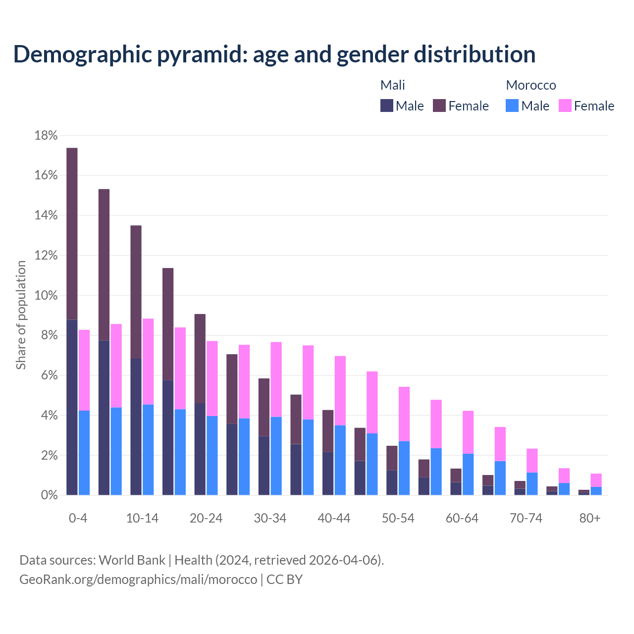 Demographics of Mali compared to Morocco: