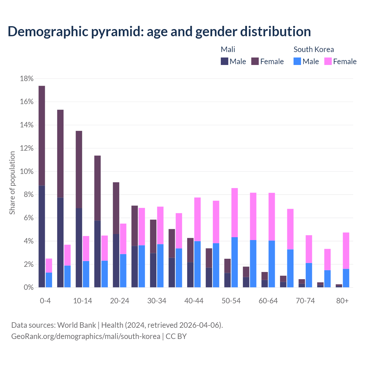 Demographics of Mali compared to South Korea: