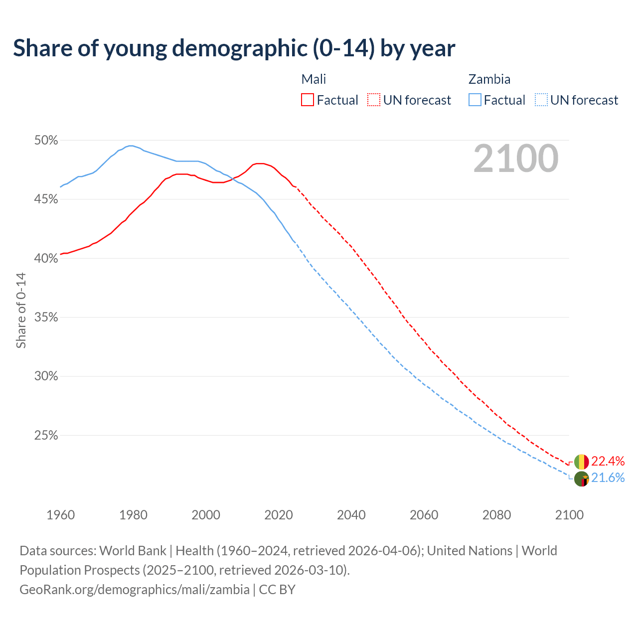 - As of 2026, the population of Mali is 26.1M vs 22.7M in Zambia.
