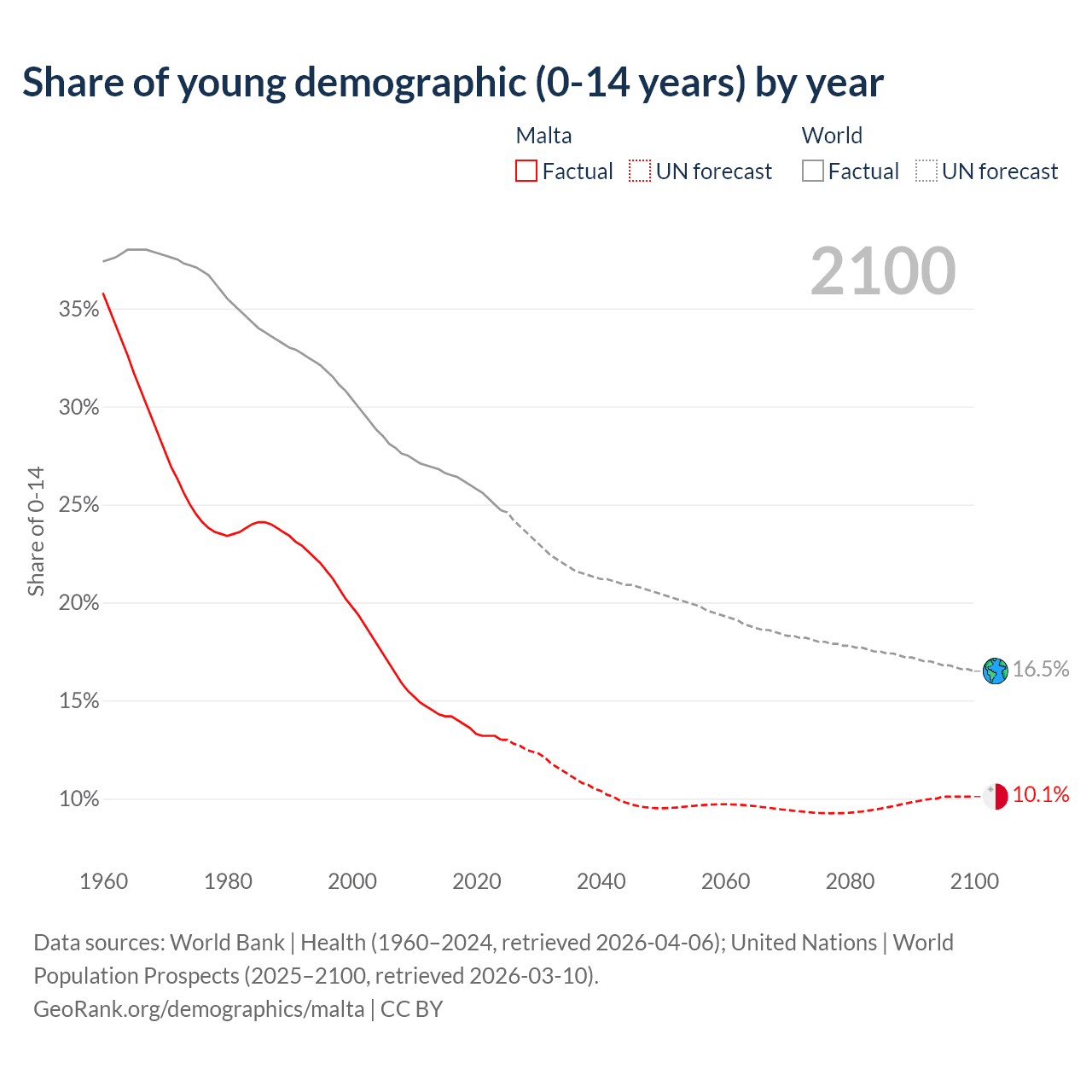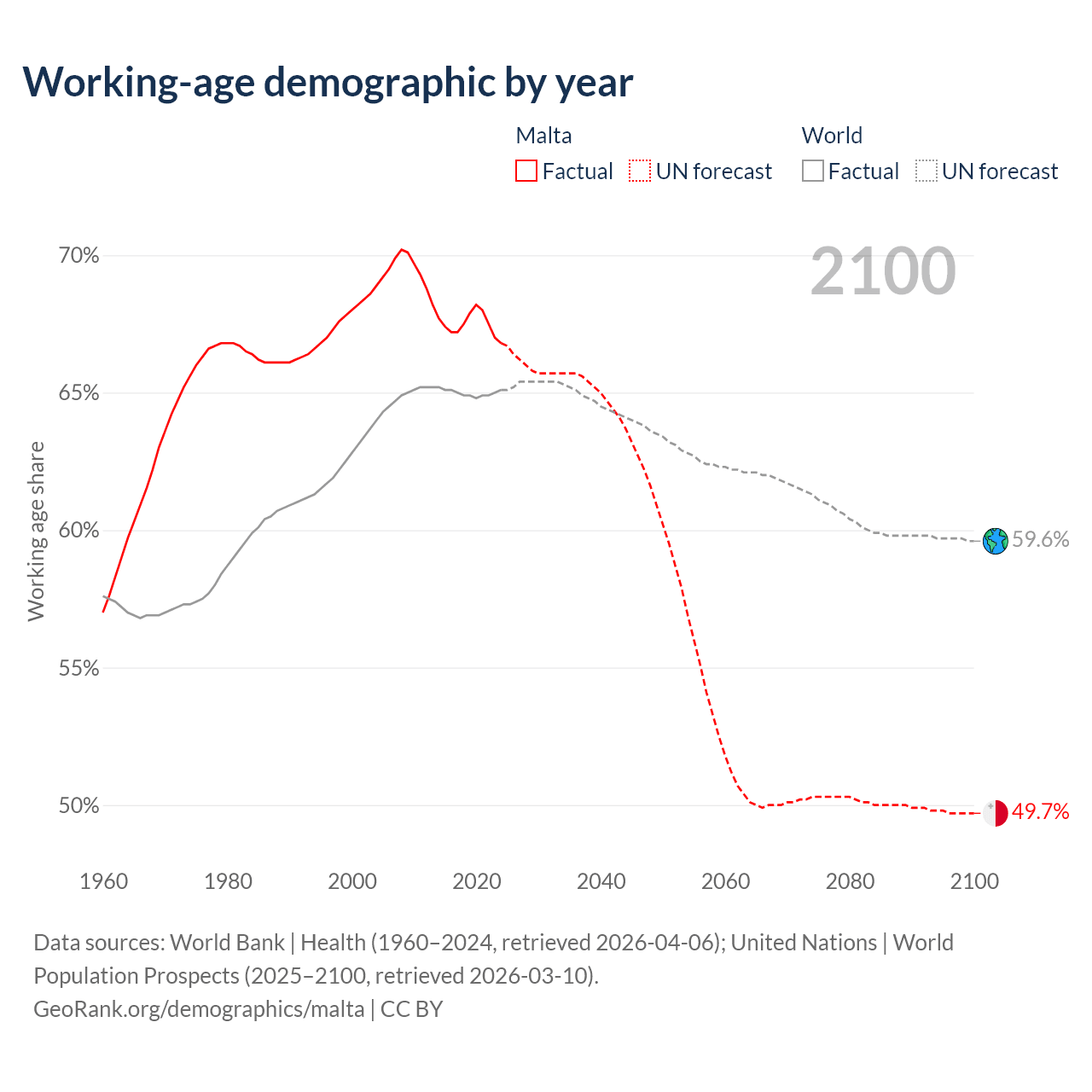Median age in Malta, 1960–2100