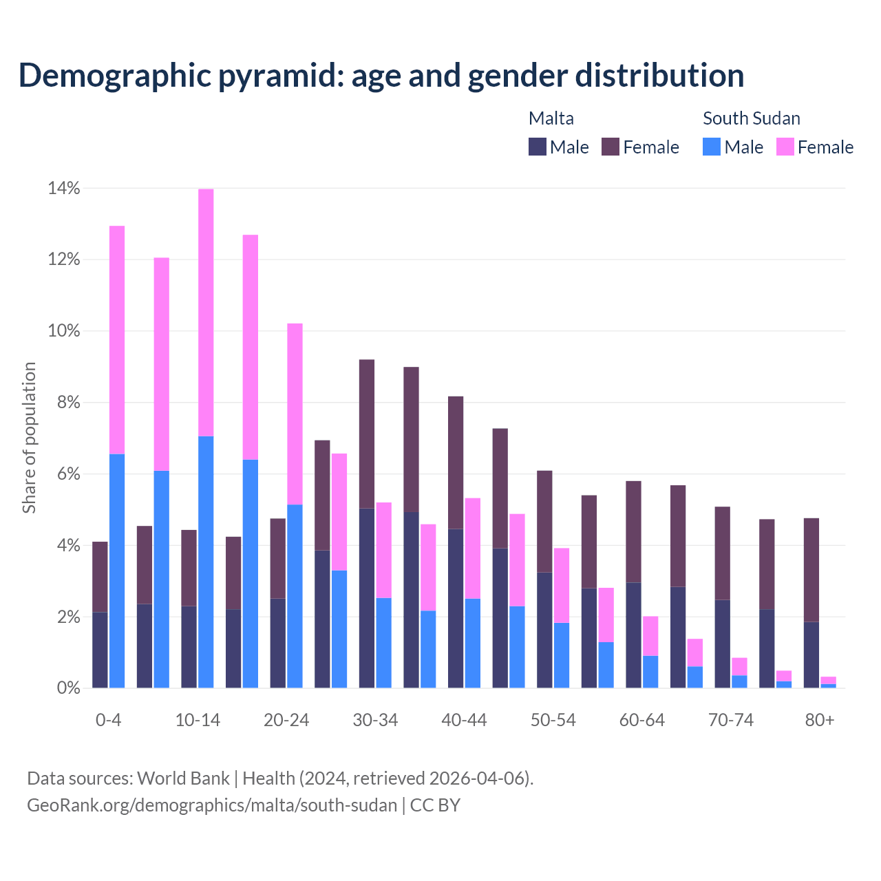 Demographics of Malta compared to South Sudan: