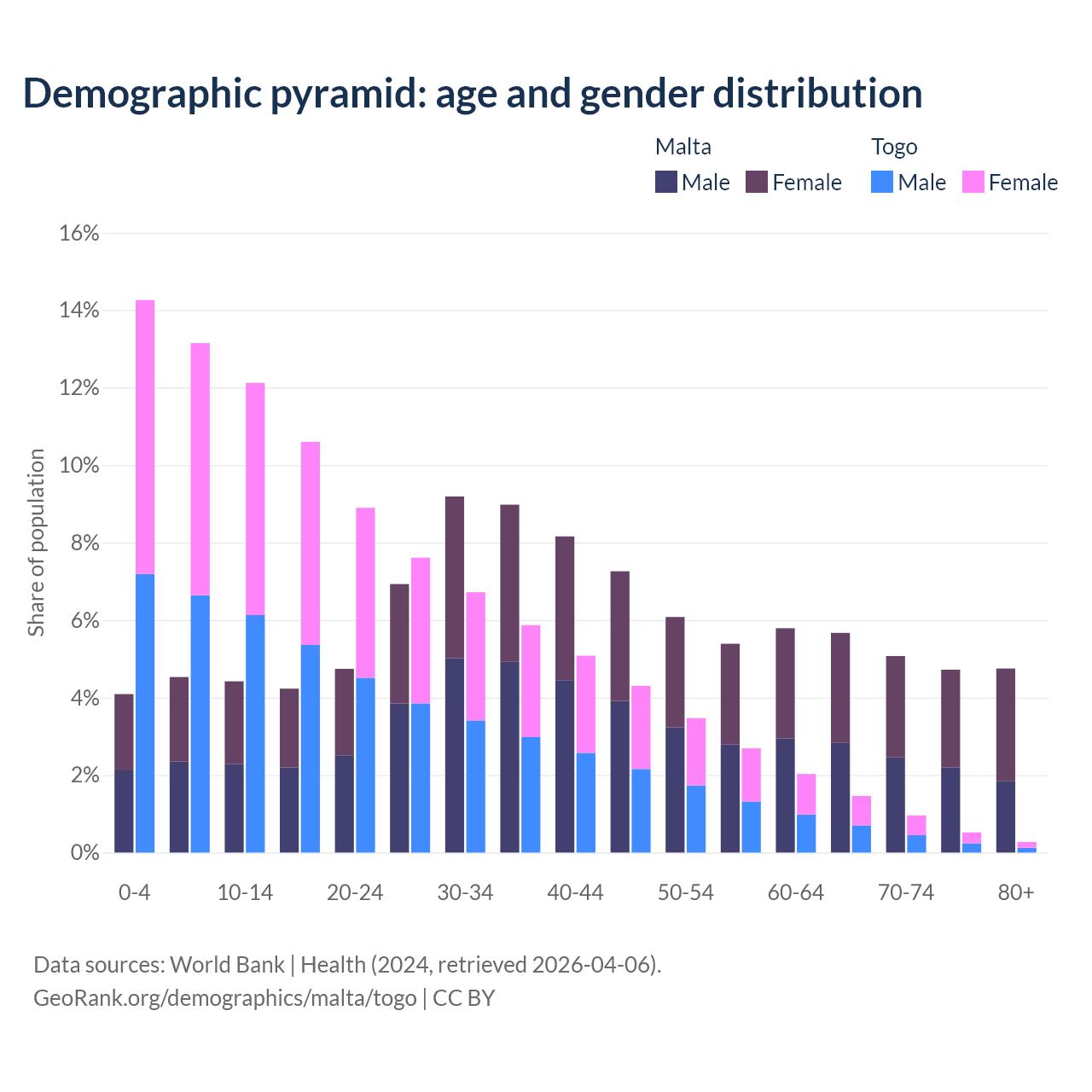 Demographics of Malta compared to Togo: