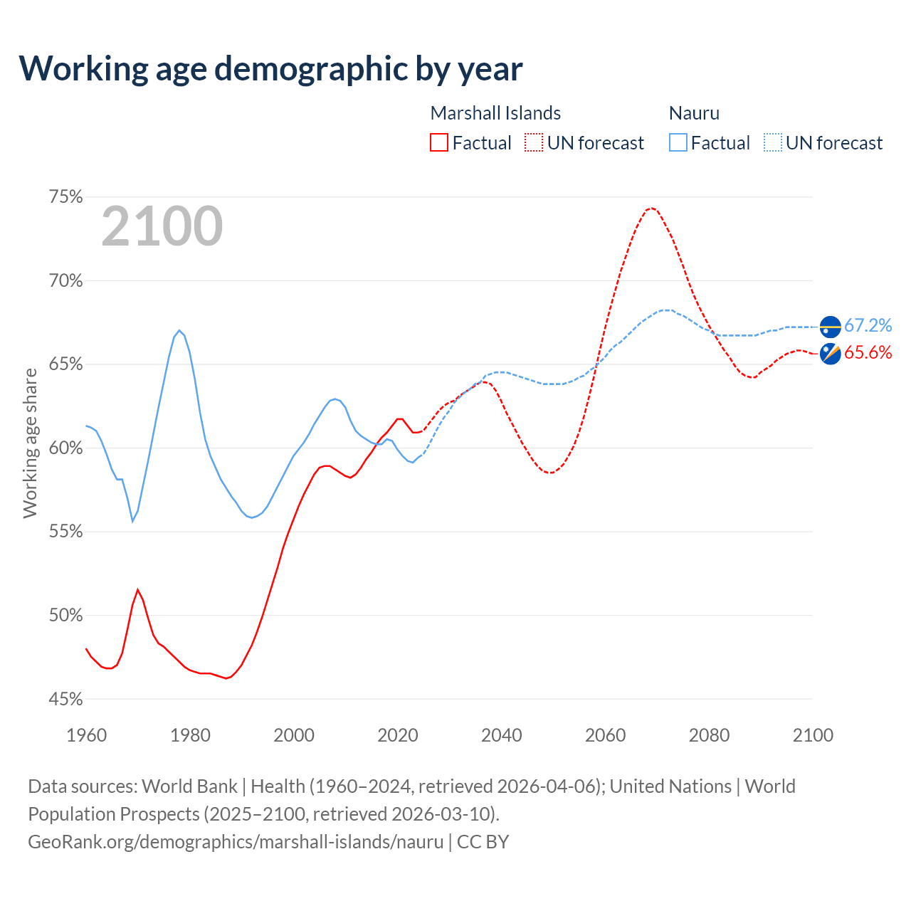 - The Marshall Islands has 21.3K working age adults (aged 15-64) vs 7.2K in Nauru.