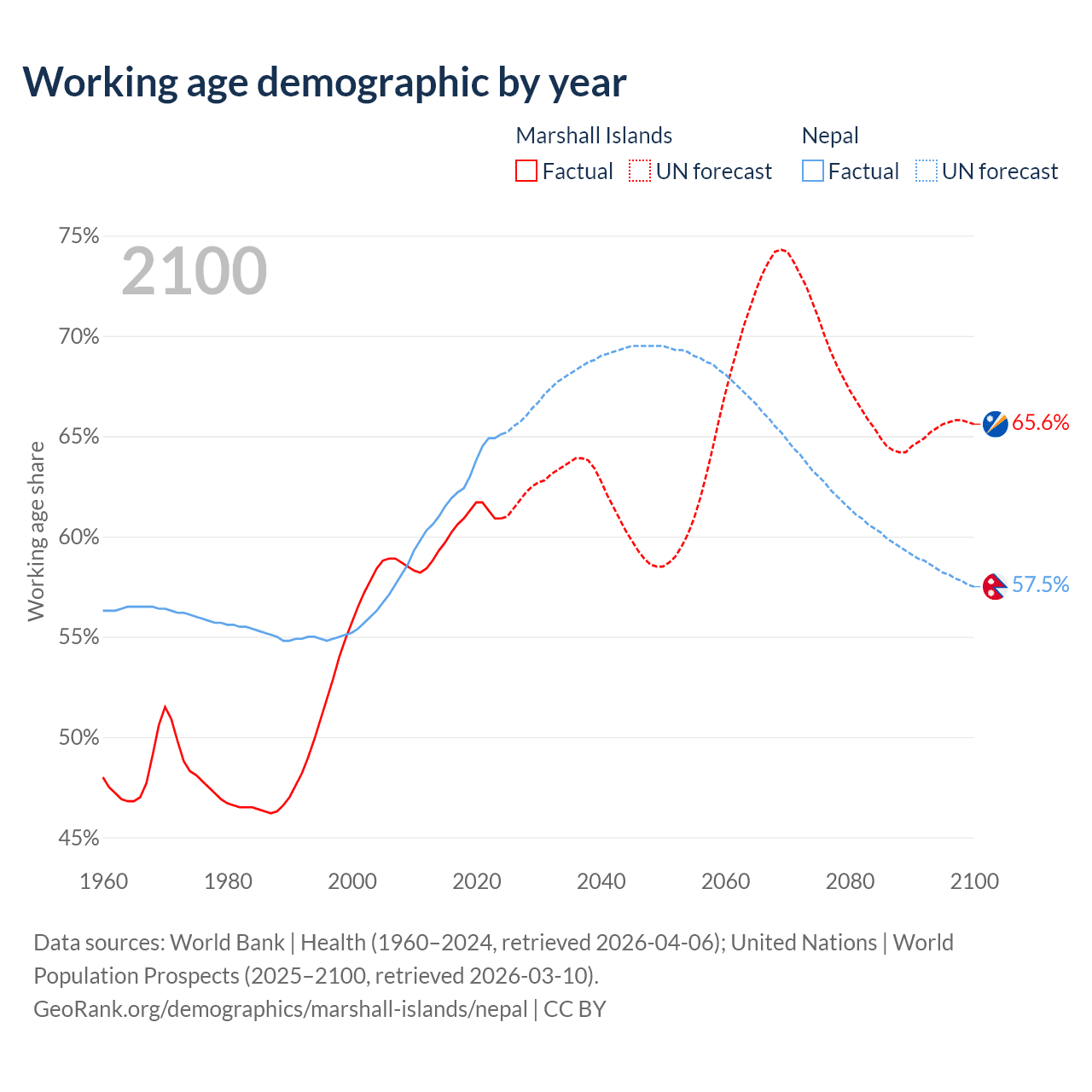 - The Marshall Islands has 21.3K working age adults (aged 15-64) vs 19.3M in Nepal.