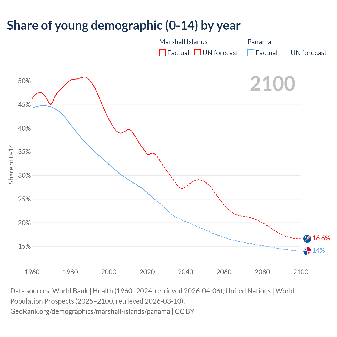 - The share of young demographic (0-15 years old) in the Marshall Islands is 34.5% vs 24.9% in Panama.