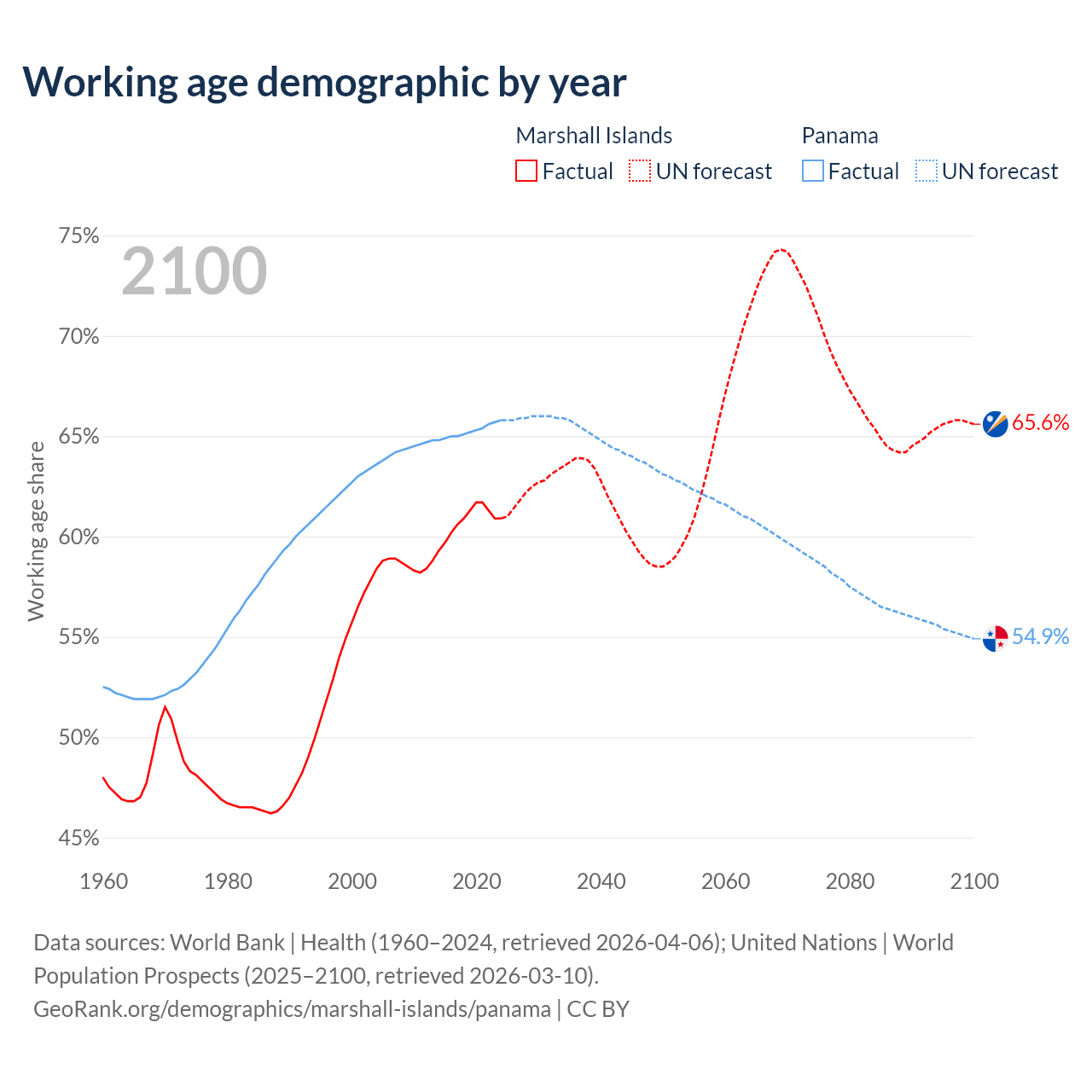 - The Marshall Islands has 21.3K working age adults (aged 15-64) vs 3.05M in Panama.
