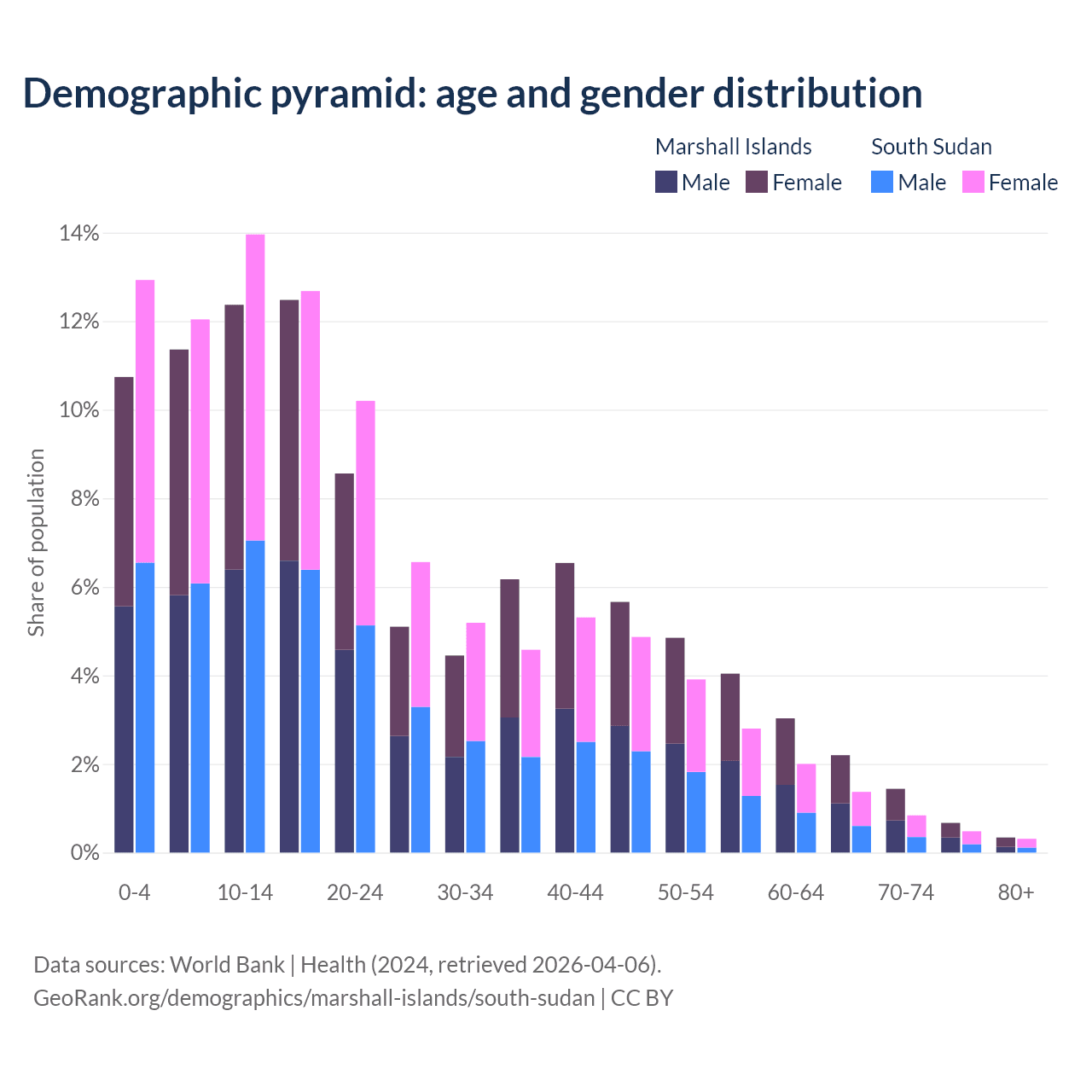 Demographics of the Marshall Islands compared to South Sudan: