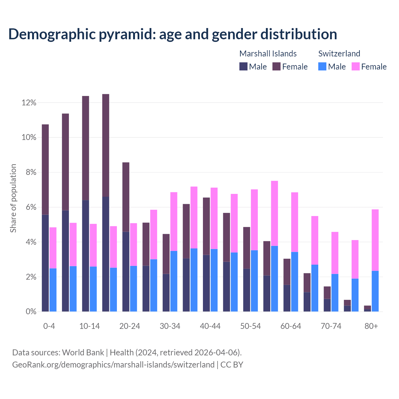 Demographics of the Marshall Islands compared to Switzerland:
