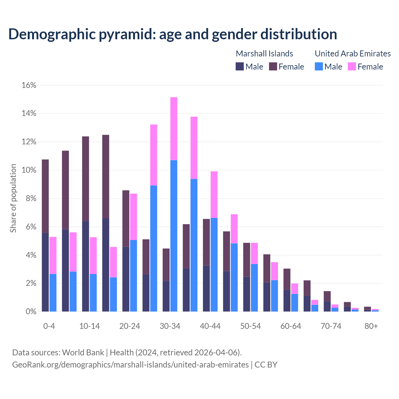 Demographics of the Marshall Islands compared to the United Arab Emirates: