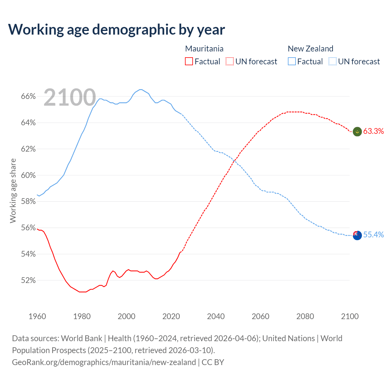 - Mauritania has 2.98M working age adults (aged 15-64) vs 3.48M in New Zealand.