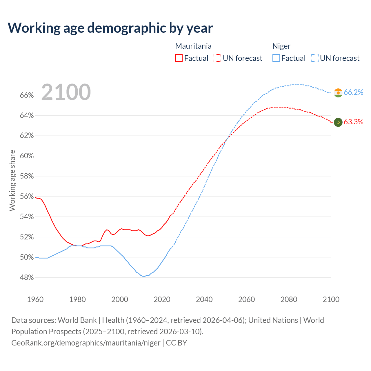 - Mauritania has 2.98M working age adults (aged 15-64) vs 14.8M in Niger.