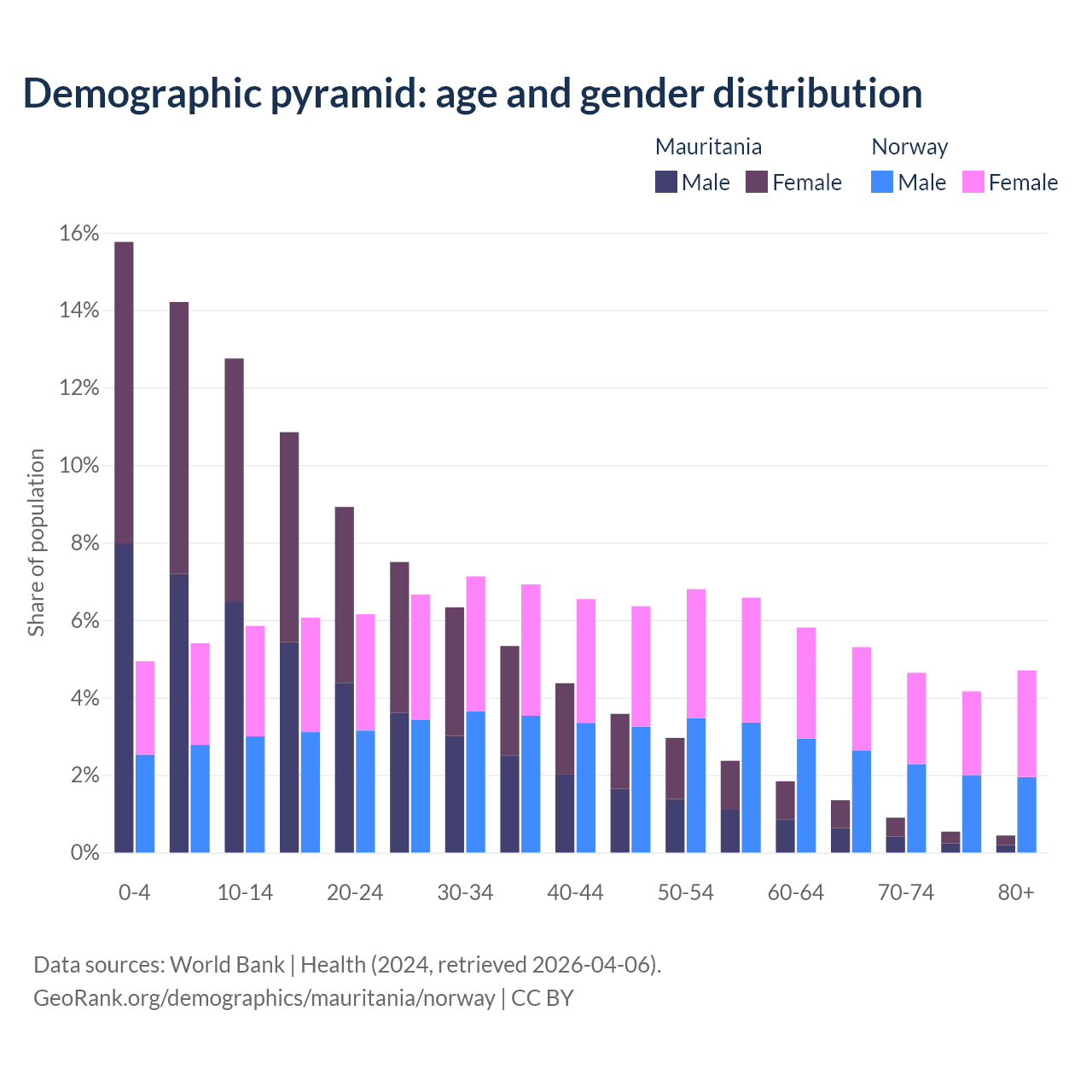 Demographics of Mauritania compared to Norway: