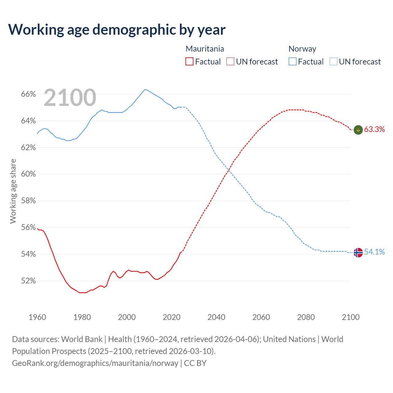 - Mauritania has 2.98M working age adults (aged 15-64) vs 3.69M in Norway.