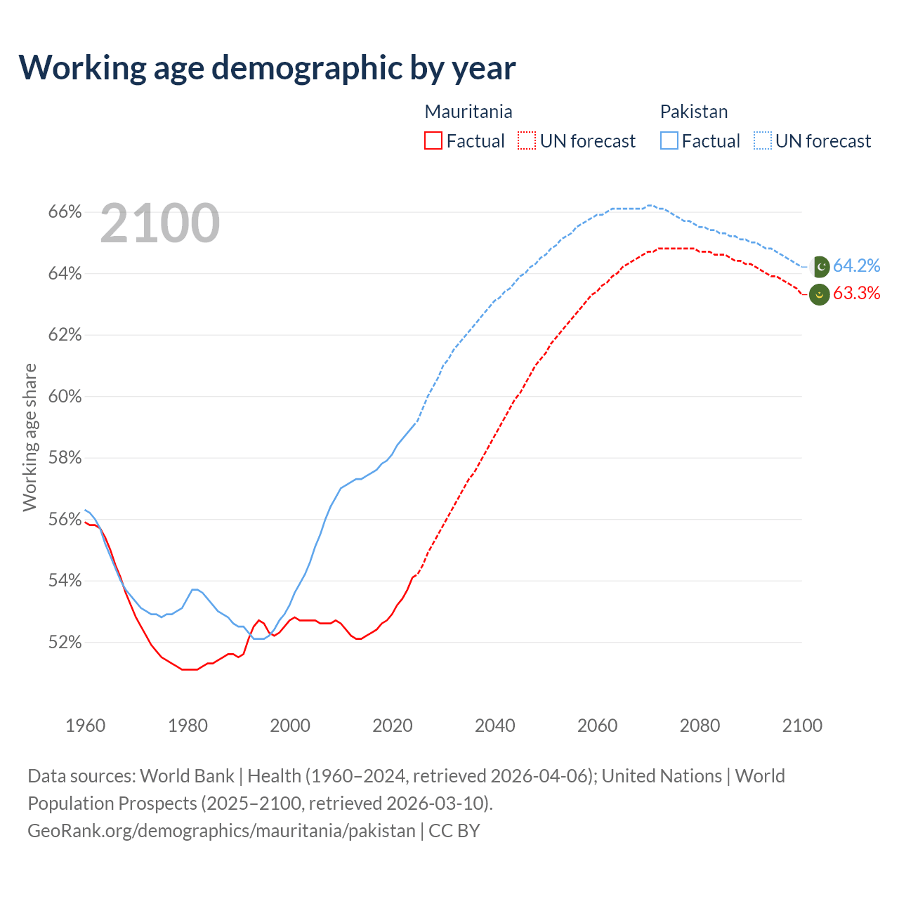 - Mauritania has 2.98M working age adults (aged 15-64) vs 154M in Pakistan.