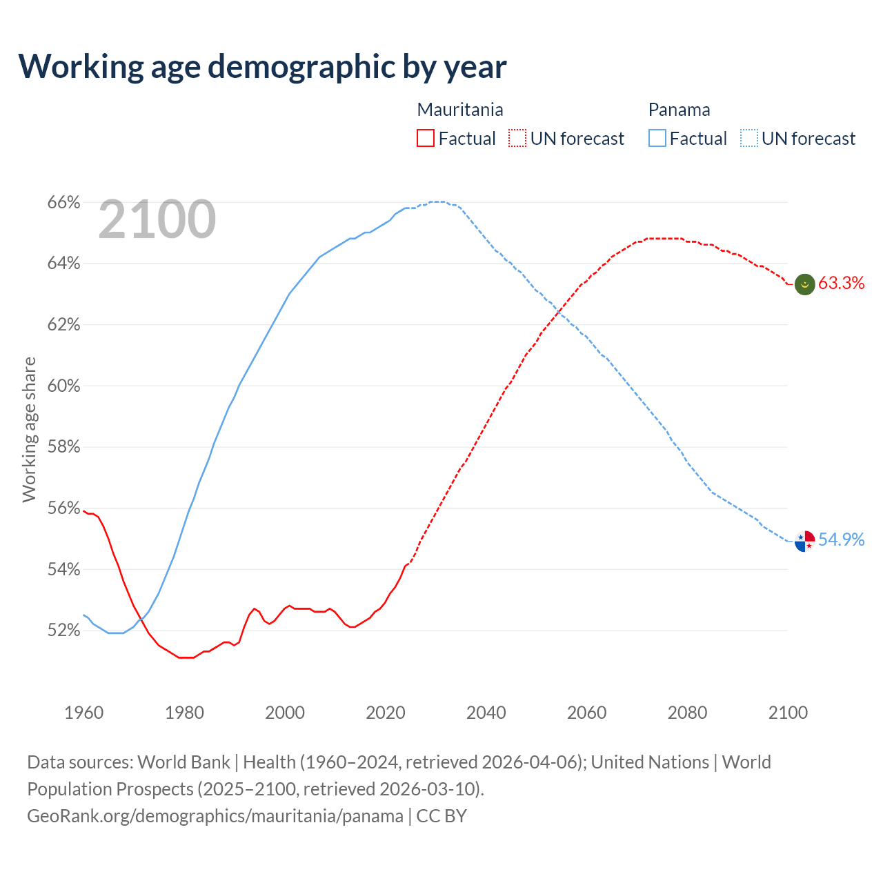 - Mauritania has 2.98M working age adults (aged 15-64) vs 3.05M in Panama.