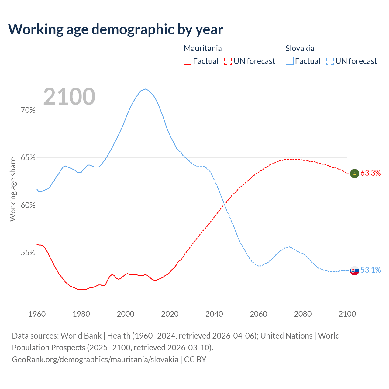 - Mauritania has 2.98M working age adults (aged 15-64) vs 3.52M in Slovakia.
