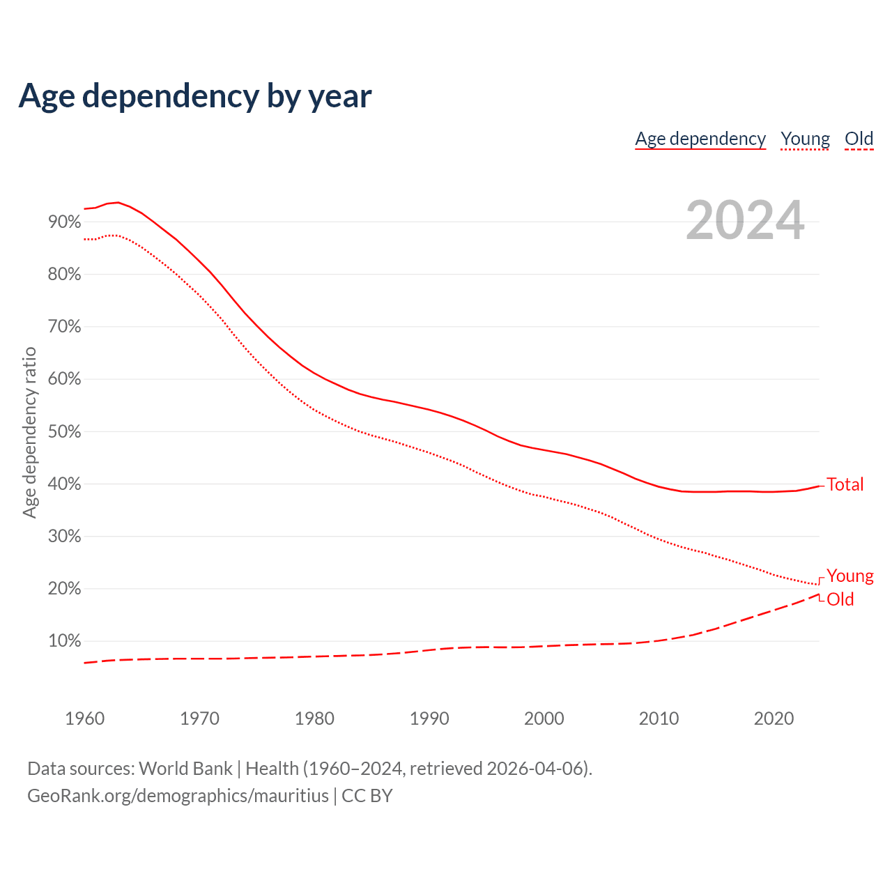 Data sources: World Bank | Health (1960–2024, retrieved 2026-04-06); U.S. Census Bureau (1960–2024, retrieved 2026-02-08).