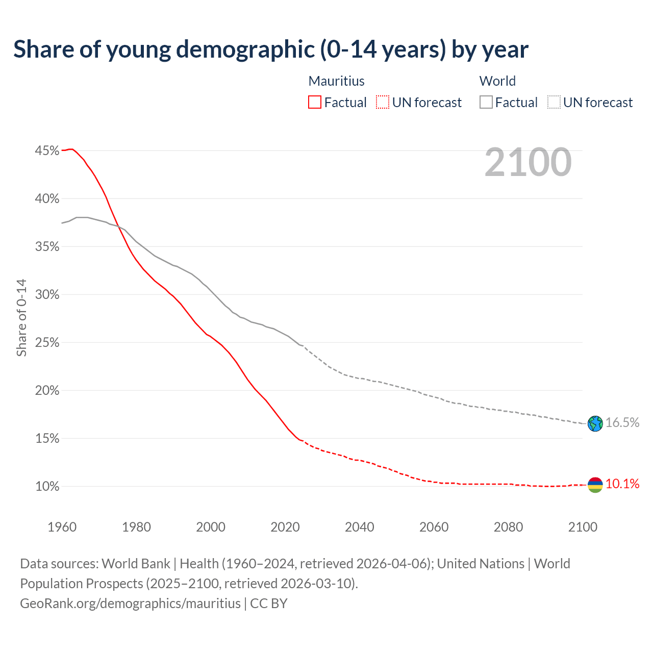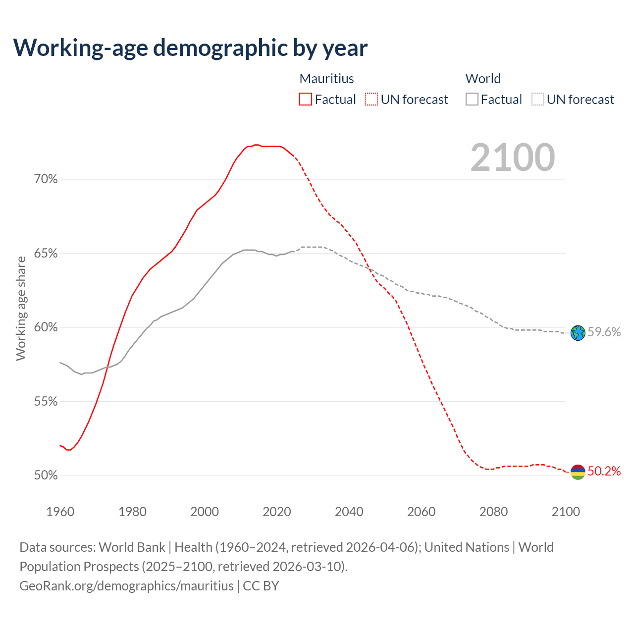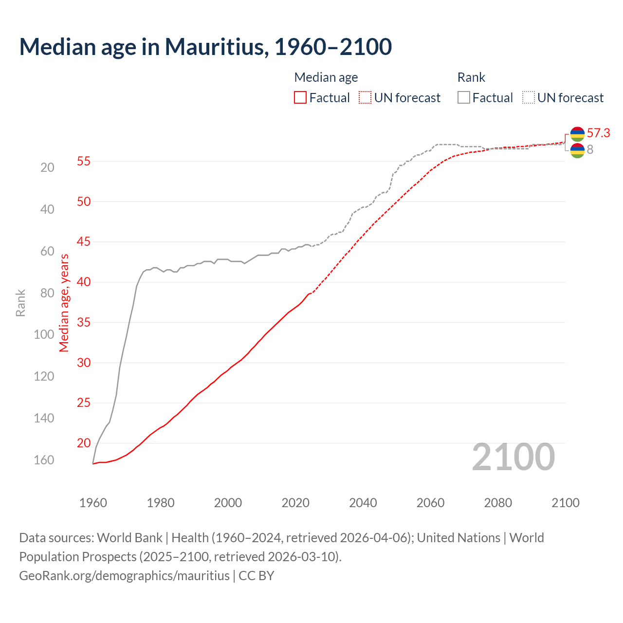 Median age in Mauritius, 1960–2100