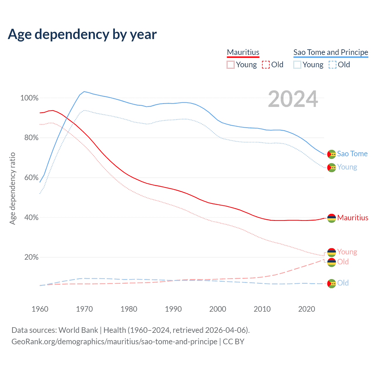 - Mauritius is ranked 57/196 by median age (oldest to youngest) vs 163/196 for Sao Tome and Principe.