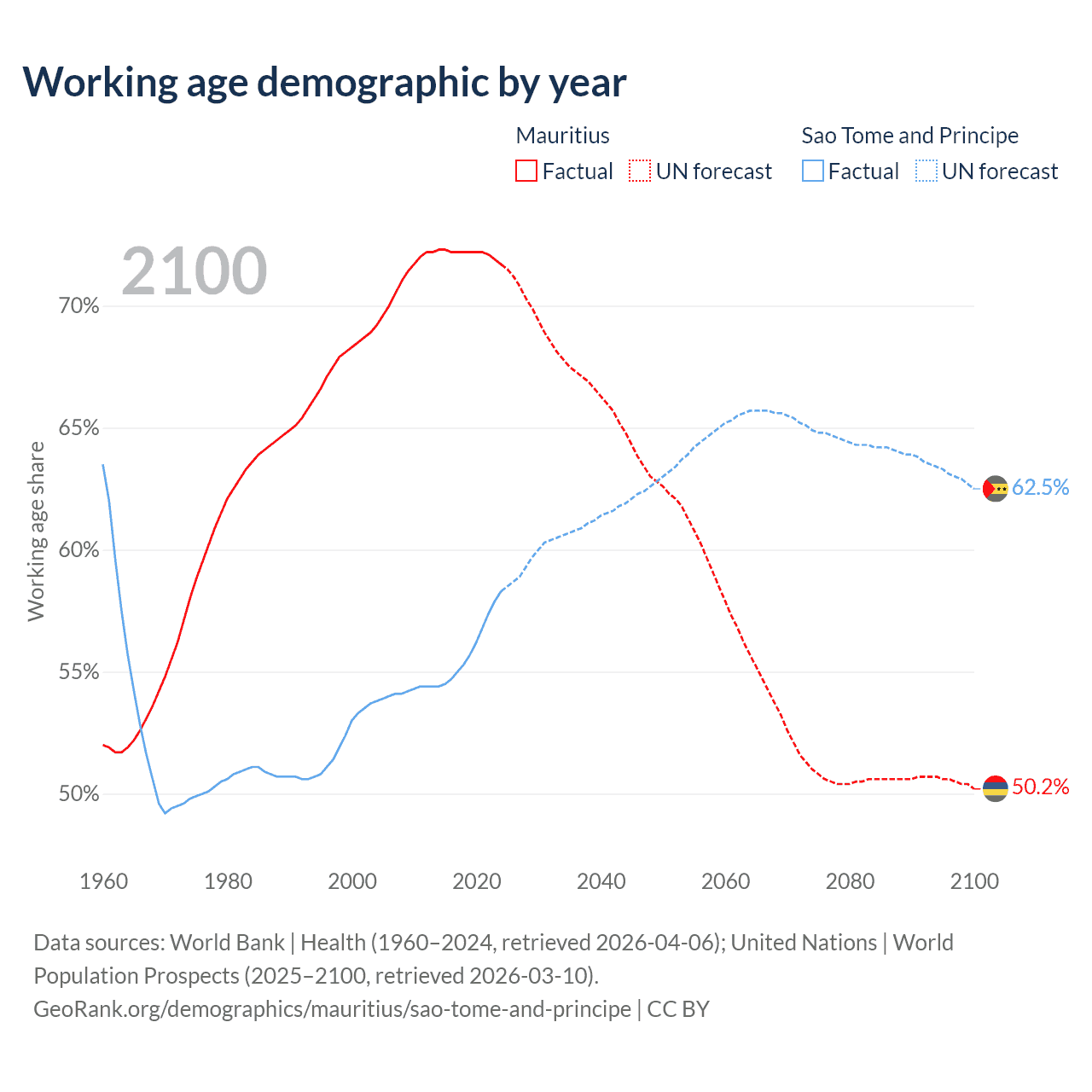 - Mauritius has 889K working age adults (aged 15-64) vs 144K in Sao Tome and Principe.