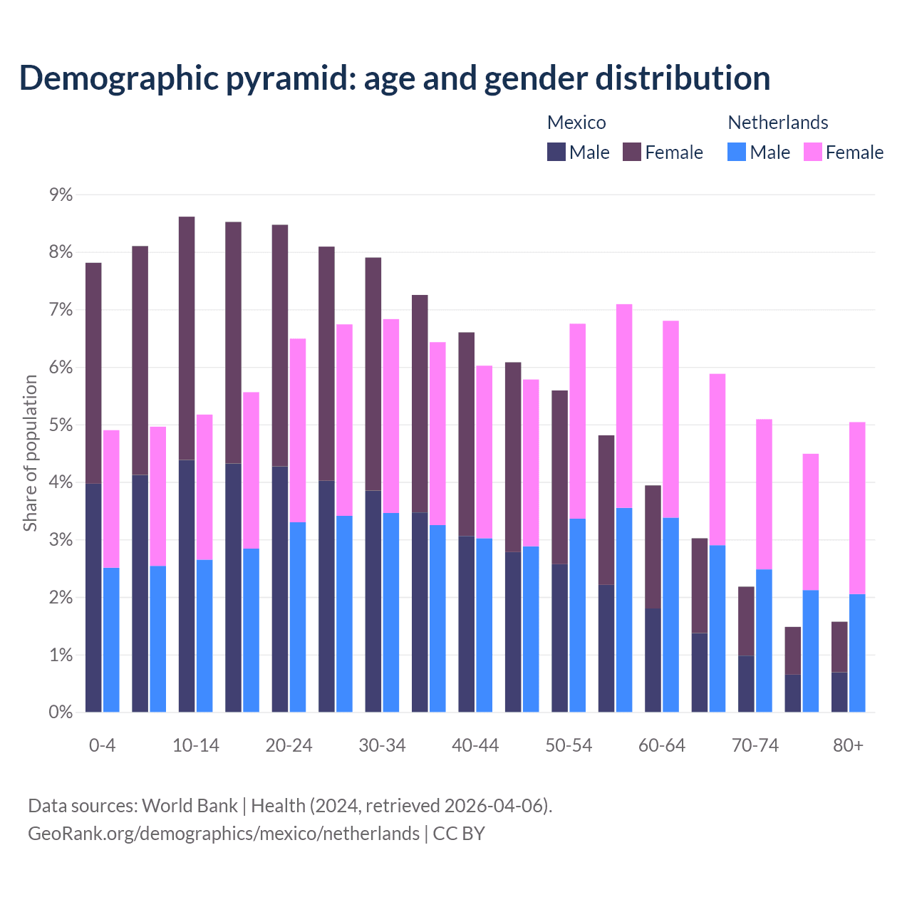 Demographics of Mexico compared to the Netherlands: