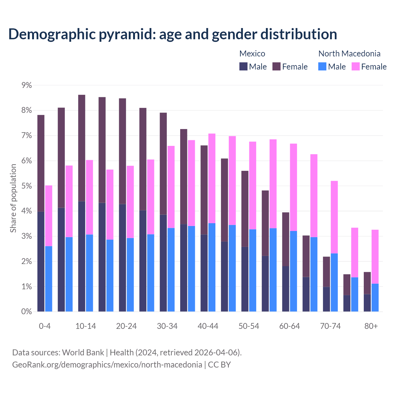 Demographics of Mexico compared to North Macedonia:
